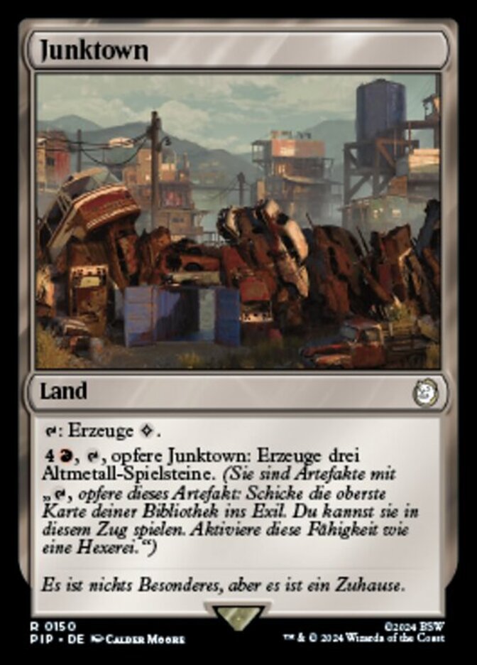 , , Sacrifice Junktown: Create three Junk tokens. (They're artifacts with ", Sacrifice this artifact: Exile the top card of your library. You may play that card this turn. Activate only as a sorcery.")