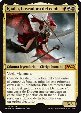 | Rules | Flying, vigilance When Kaalia, Zenith Seeker enters the battlefield, look at the top six cards of your library. You may reveal an Angel card, a Demon card, and/or a Dragon card from among them and put them into your hand. Put the rest on the bottom of your library in a random order. |