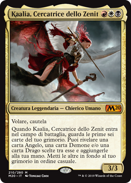 | Rules | Flying, vigilance When Kaalia, Zenith Seeker enters the battlefield, look at the top six cards of your library. You may reveal an Angel card, a Demon card, and/or a Dragon card from among them and put them into your hand. Put the rest on the bottom of your library in a random order. |