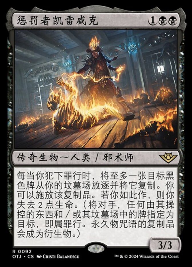 | Rules | Whenever you commit a crime, exile up to one target black card from your graveyard and copy it. You may cast the copy. If you do, you lose 2 life. (Targeting opponents, anything they control, and/or cards in their graveyards is a crime. Copies of permanent spells become tokens.) |