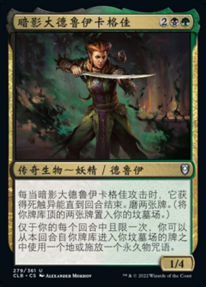 | Rules | Whenever Kagha, Shadow Archdruid attacks, it gains deathtouch until end of turn. Mill two cards. (Put the top two cards of your library into your graveyard.) Once during each of your turns, you may play a land or cast a permanent spell from among cards in your graveyard that were put there from your library this turn. |