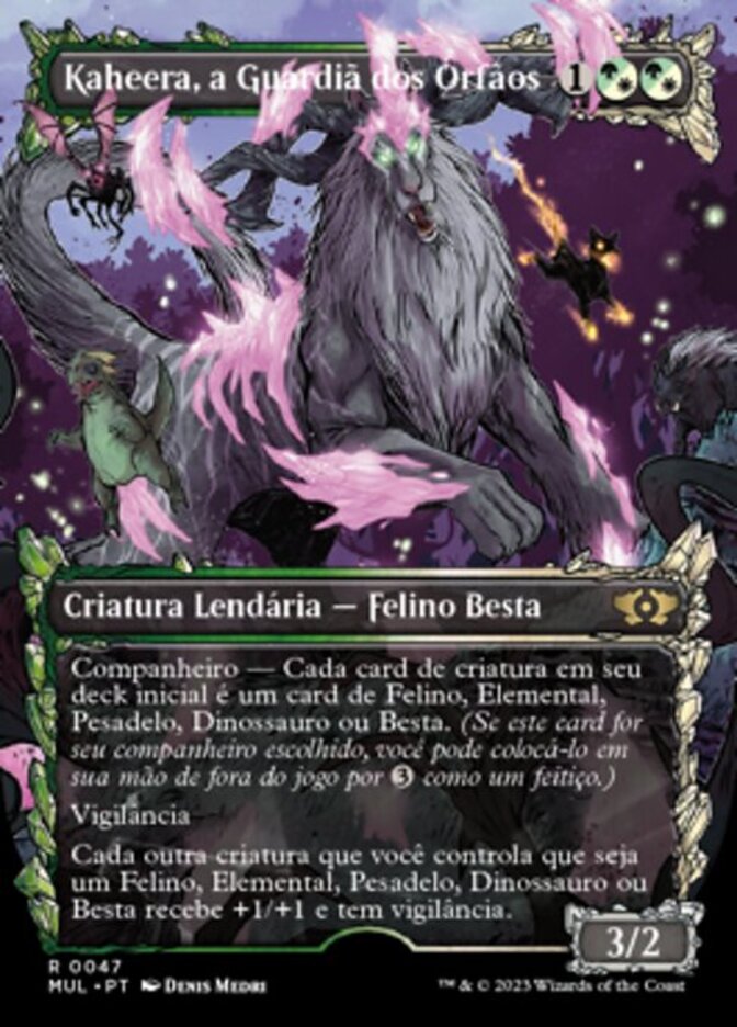 | Rules | Companion — Each creature card in your starting deck is a Cat, Elemental, Nightmare, Dinosaur, or Beast card. (If this card is your chosen companion, you may put it into your hand from outside the game for any time you could cast a sorcery.) Vigilance Each other creature you control that's a Cat, Elemental, Nightmare, Dinosaur, or Beast gets +1/+1 and has vigilance. |