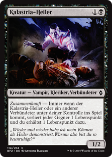 | Rules | Rally — Whenever Kalastria Healer or another Ally enters the battlefield under your control, each opponent loses 1 life and you gain 1 life. |