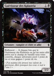 | Rules | Rally — Whenever Kalastria Healer or another Ally enters the battlefield under your control, each opponent loses 1 life and you gain 1 life. |