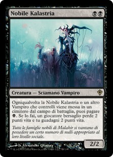 | Rules | Whenever Kalastria Highborn or another Vampire you control dies, you may pay . If you do, target player loses 2 life and you gain 2 life. |
