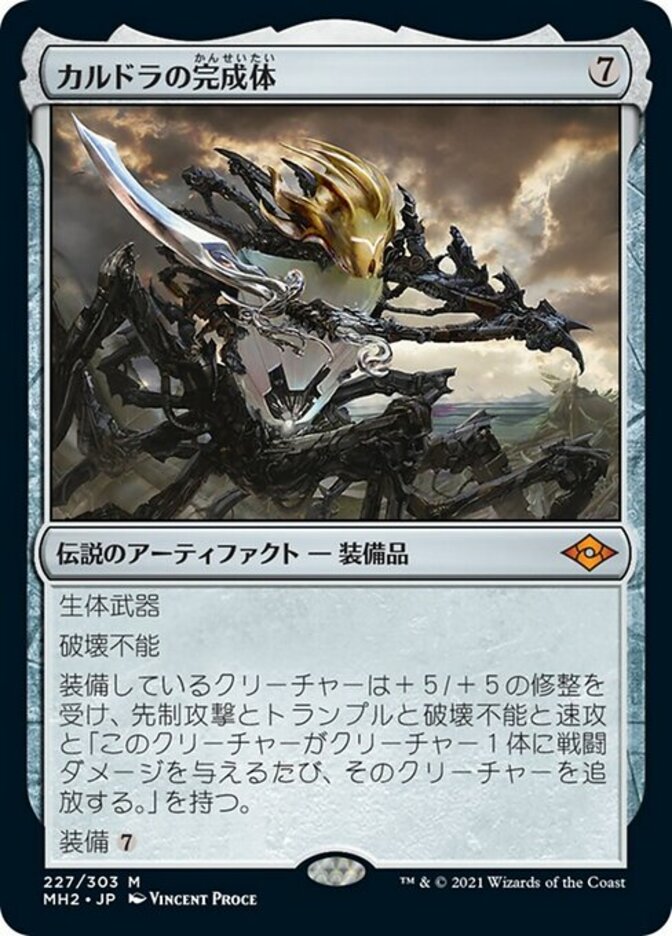 | Rules | Living weapon Indestructible Equipped creature gets +5/+5 and has first strike, trample, indestructible, haste, and "Whenever this creature deals combat damage to a creature, exile that creature." Equip |