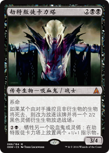| Rules | Lifelink If a nontoken creature an opponent controls would die, instead exile that card and create a 2/2 black Zombie creature token. , Sacrifice another Vampire or Zombie: Put two +1/+1 counters on Kalitas, Traitor of Ghet. |