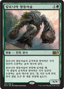 | Rules | Kalonian Twingrove's power and toughness are each equal to the number of Forests you control. When Kalonian Twingrove enters the battlefield, create a green Treefolk Warrior creature token with "This creature's power and toughness are each equal to the number of Forests you control." |