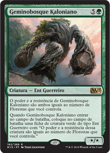 | Rules | Kalonian Twingrove's power and toughness are each equal to the number of Forests you control. When Kalonian Twingrove enters the battlefield, create a green Treefolk Warrior creature token with "This creature's power and toughness are each equal to the number of Forests you control." |
