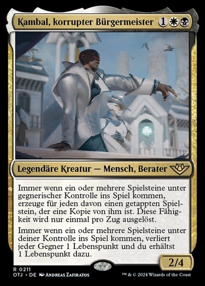 | Rules | Whenever one or more tokens enter the battlefield under your opponents' control, for each of them, create a tapped token that's a copy of it. This ability triggers only once each turn. Whenever one or more tokens enter the battlefield under your control, each opponent loses 1 life and you gain 1 life. |