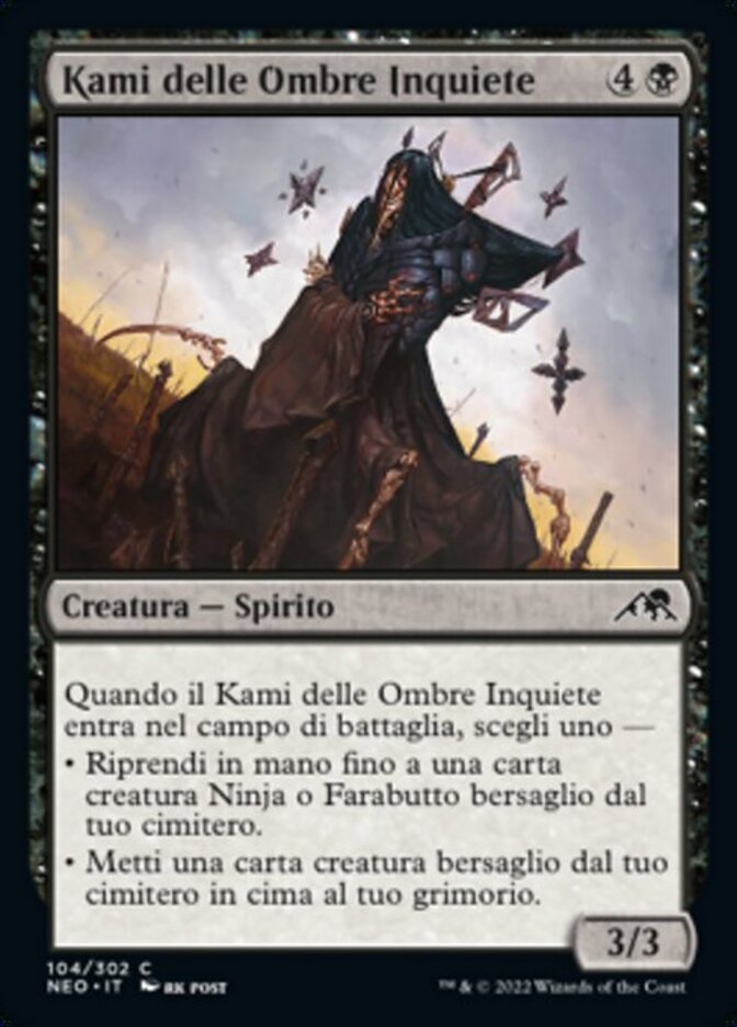 | Rules | When Kami of Restless Shadows enters the battlefield, choose one — • Return up to one target Ninja or Rogue creature card from your graveyard to your hand. • Put target creature card from your graveyard on top of your library. |