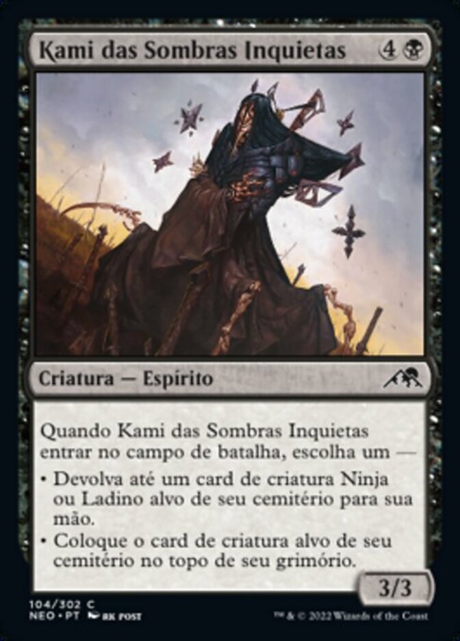 | Rules | When Kami of Restless Shadows enters the battlefield, choose one — • Return up to one target Ninja or Rogue creature card from your graveyard to your hand. • Put target creature card from your graveyard on top of your library. |