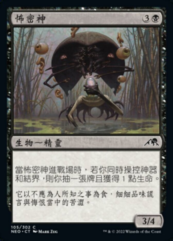 | Rules | When Kami of Terrible Secrets enters the battlefield, if you control an artifact and an enchantment, you draw a card and you gain 1 life. |