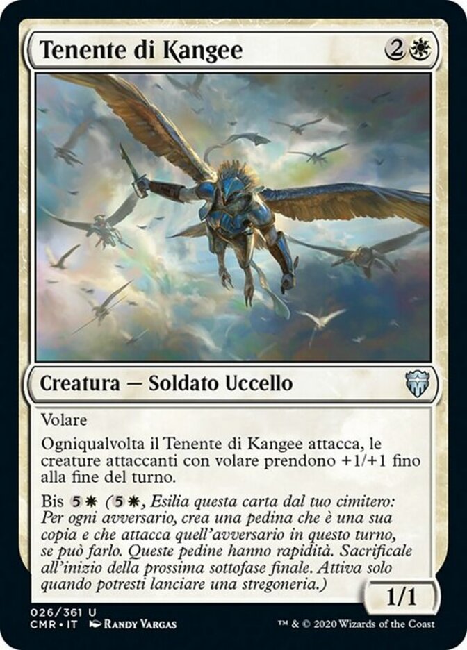 | Rules | Flying Whenever Kangee's Lieutenant attacks, attacking creatures with flying get +1/+1 until end of turn. Encore (, Exile this card from your graveyard: For each opponent, create a token copy that attacks that opponent this turn if able. They gain haste. Sacrifice them at the beginning of the next end step. Activate only as a sorcery.) |