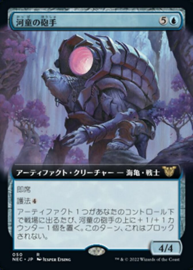 | Rules | Improvise (Your artifacts can help cast this spell. Each artifact you tap after you're done activating mana abilities pays for .) Ward Whenever an artifact enters the battlefield under your control, put a +1/+1 counter on Kappa Cannoneer and it can't be blocked this turn. |