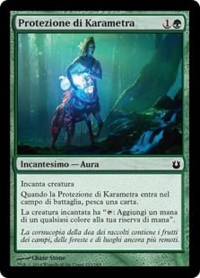 | Rules | Enchant creature When Karametra's Favor enters the battlefield, draw a card. Enchanted creature has ": Add one mana of any color." |