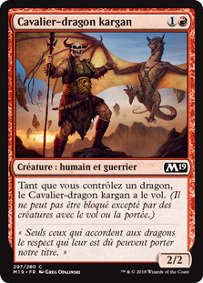 | Rules | As long as you control a Dragon, Kargan Dragonrider has flying. (It can't be blocked except by creatures with flying or reach.) |
