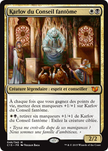 | Rules | Whenever you gain life, put two +1/+1 counters on Karlov of the Ghost Council. , Remove six +1/+1 counters from Karlov of the Ghost Council: Exile target creature. |