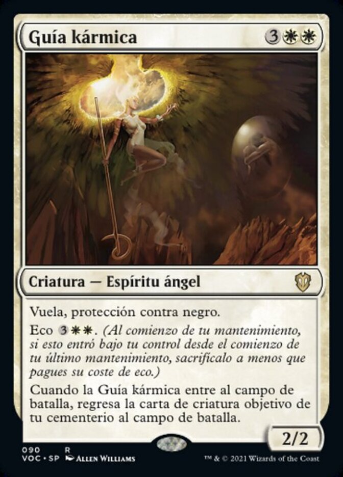 | Rules | Flying, protection from black Echo (At the beginning of your upkeep, if this came under your control since the beginning of your last upkeep, sacrifice it unless you pay its echo cost.) When Karmic Guide enters the battlefield, return target creature card from your graveyard to the battlefield. |