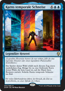 | Rules | (You may cast a legendary sorcery only if you control a legendary creature or planeswalker.) Target player takes an extra turn after this one. Return up to one target nonland permanent to its owner's hand. Exile Karn's Temporal Sundering. |