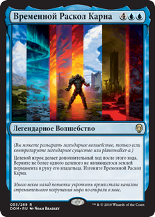 | Rules | (You may cast a legendary sorcery only if you control a legendary creature or planeswalker.) Target player takes an extra turn after this one. Return up to one target nonland permanent to its owner's hand. Exile Karn's Temporal Sundering. |