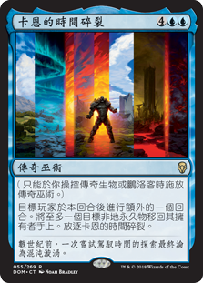 | Rules | (You may cast a legendary sorcery only if you control a legendary creature or planeswalker.) Target player takes an extra turn after this one. Return up to one target nonland permanent to its owner's hand. Exile Karn's Temporal Sundering. |