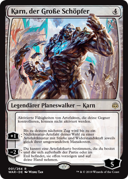 | Rules | Activated abilities of artifacts your opponents control can't be activated. +1: Until your next turn, up to one target noncreature artifact becomes an artifact creature with power and toughness each equal to its mana value. −2: You may reveal an artifact card you own from outside the game or choose a face-up artifact card you own in exile. Put that card into your hand. |