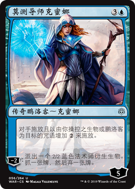 | Rules | Spells your opponents cast that target a creature or planeswalker you control cost more to cast. −2: Create a 2/2 blue Wizard creature token. Draw a card, then discard a card. |