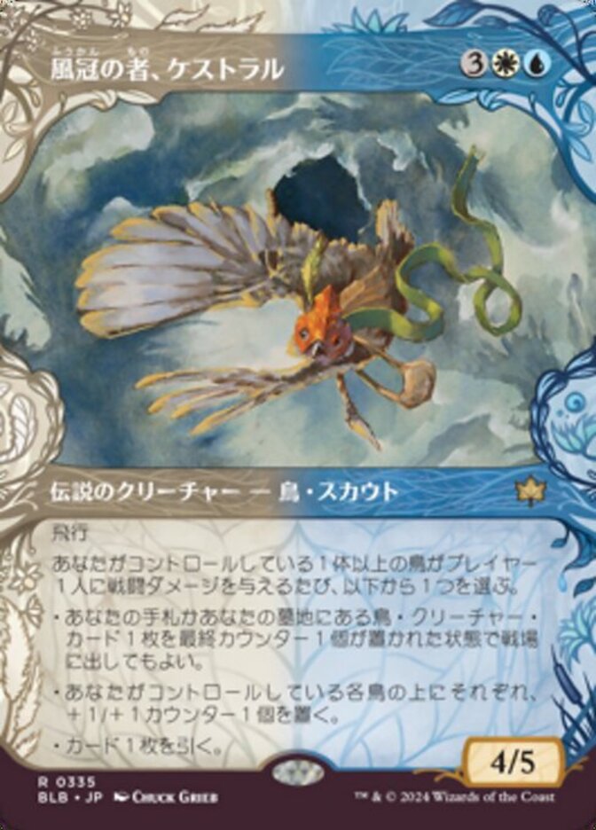 | Rules | Flying Whenever one or more Birds you control deal combat damage to a player, choose one — • You may put a Bird creature card from your hand or graveyard onto the battlefield with a finality counter on it. • Put a +1/+1 counter on each Bird you control. • Draw a card. |