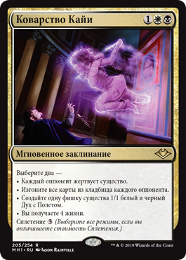 | Rules | Choose two — • Each opponent sacrifices a creature. • Exile all opponents' graveyards. • Create a 1/1 white and black Spirit creature token with flying. • You gain 4 life. Entwine (Choose all if you pay the entwine cost.) |