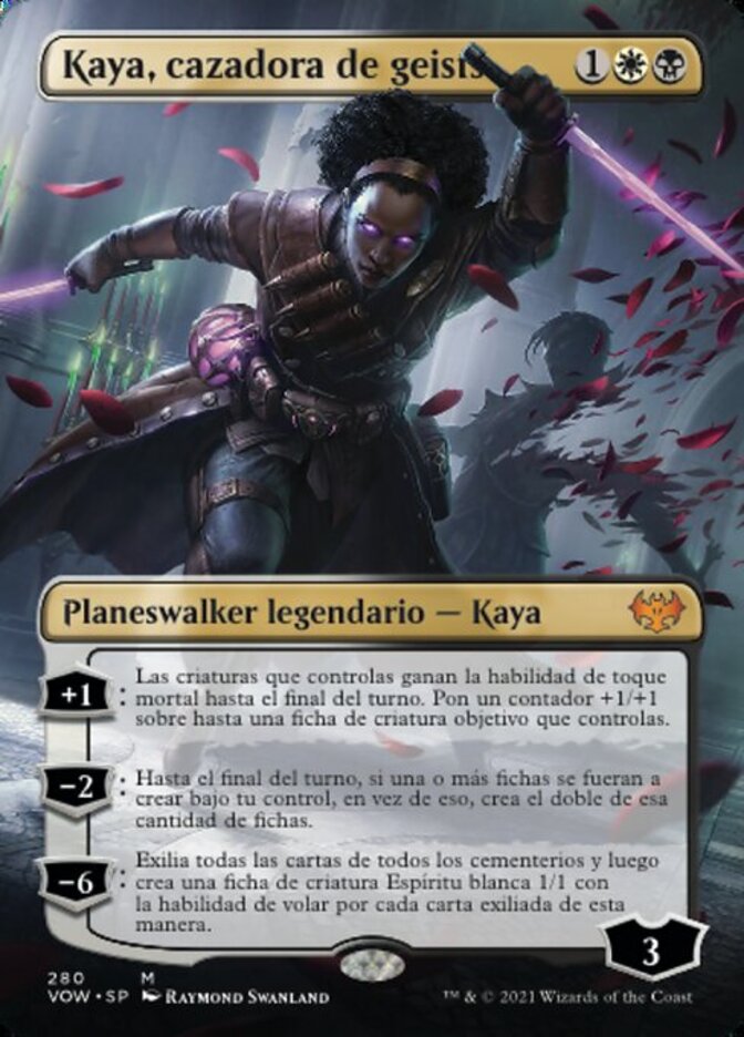 | Rules | +1: Creatures you control gain deathtouch until end of turn. Put a +1/+1 counter on up to one target creature token you control. −2: Until end of turn, if one or more tokens would be created under your control, twice that many of those tokens are created instead. −6: Exile all cards from all graveyards, then create a 1/1 white Spirit creature token with flying for each card exiled this way. |