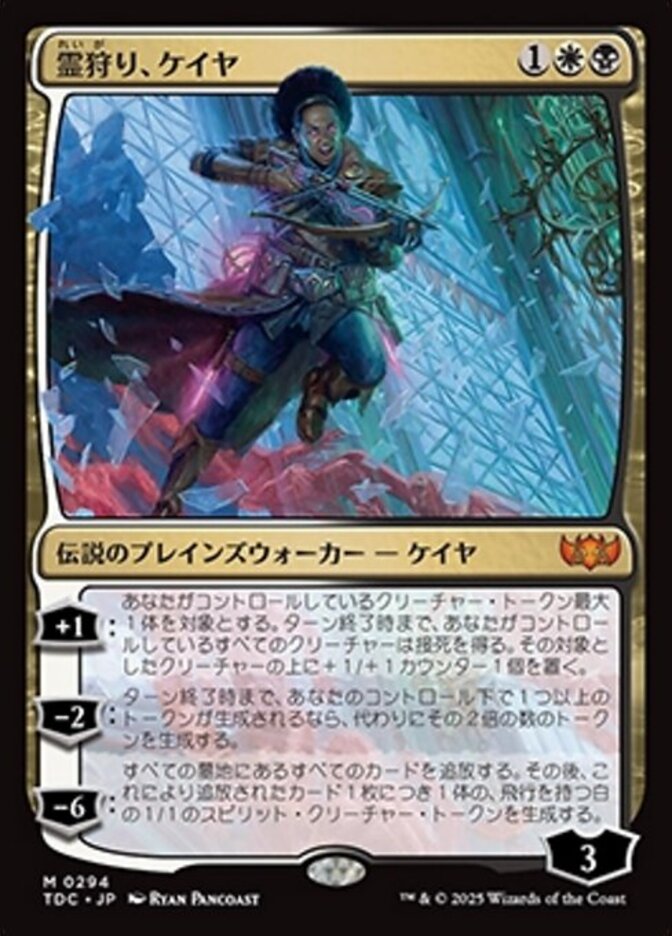 | Rules | +1: Creatures you control gain deathtouch until end of turn. Put a +1/+1 counter on up to one target creature token you control. −2: Until end of turn, if one or more tokens would be created under your control, twice that many of those tokens are created instead. −6: Exile all cards from all graveyards, then create a 1/1 white Spirit creature token with flying for each card exiled this way. |