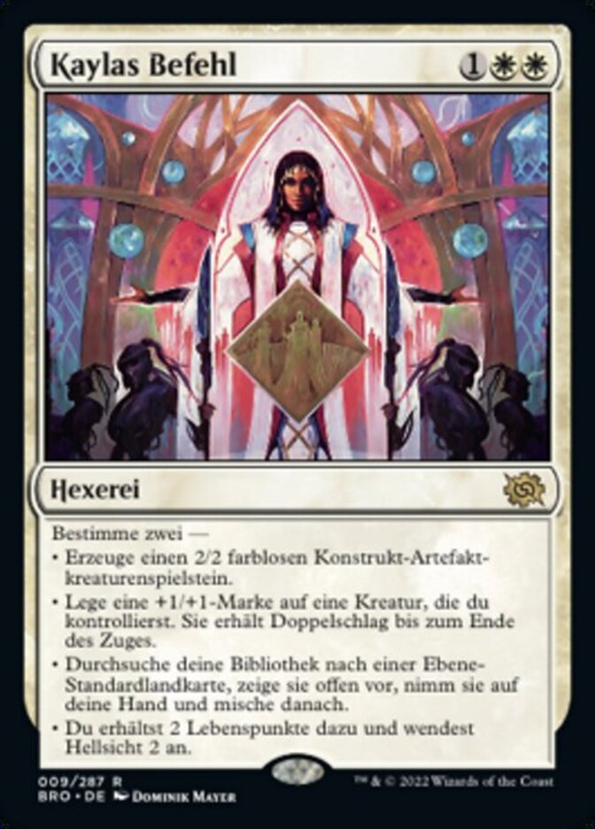 | Rules | Choose two — • Create a 2/2 colorless Construct artifact creature token. • Put a +1/+1 counter on a creature you control. It gains double strike until end of turn. • Search your library for a basic Plains card, reveal it, put it into your hand, then shuffle. • You gain 2 life and scry 2. |