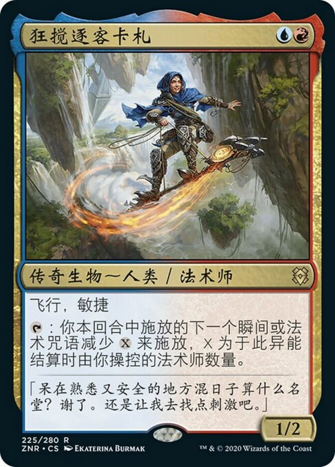| Rules | Flying, haste : The next instant or sorcery spell you cast this turn costs less to cast, where X is the number of Wizards you control as this ability resolves. |