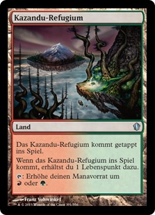 | Rules | Kazandu Refuge enters the battlefield tapped. When Kazandu Refuge enters the battlefield, you gain 1 life. : Add or . |