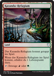 | Rules | Kazandu Refuge enters the battlefield tapped. When Kazandu Refuge enters the battlefield, you gain 1 life. : Add or . |
