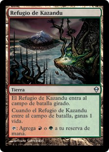 | Rules | Kazandu Refuge enters the battlefield tapped. When Kazandu Refuge enters the battlefield, you gain 1 life. : Add or . |