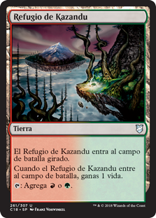| Rules | Kazandu Refuge enters the battlefield tapped. When Kazandu Refuge enters the battlefield, you gain 1 life. : Add or . |