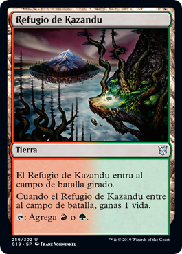 | Rules | Kazandu Refuge enters the battlefield tapped. When Kazandu Refuge enters the battlefield, you gain 1 life. : Add or . |