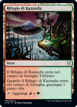 | Rules | Kazandu Refuge enters the battlefield tapped. When Kazandu Refuge enters the battlefield, you gain 1 life. : Add or . |
