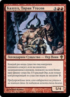 | Rules | Whenever a creature an opponent controls attacks, if you're the defending player, create a 3/3 red Ogre creature token unless that creature's controller pays . |