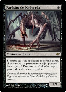 | Rules | Whenever an opponent draws a card, if you control a red permanent, you may have Kederekt Parasite deal 1 damage to that player. |