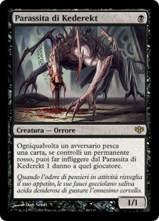 | Rules | Whenever an opponent draws a card, if you control a red permanent, you may have Kederekt Parasite deal 1 damage to that player. |