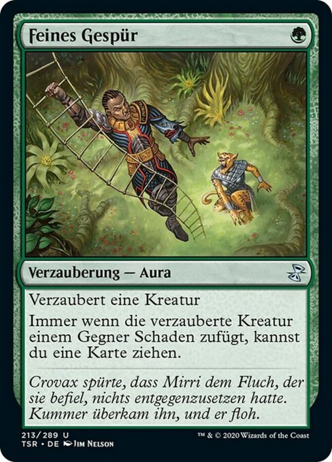 | Rules | Enchant creature Whenever enchanted creature deals damage to an opponent, you may draw a card. |