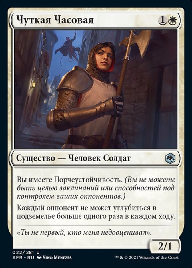 | Rules | You have hexproof. (You can't be the target of spells or abilities your opponents control.) Each opponent can't venture into the dungeon more than once each turn. |