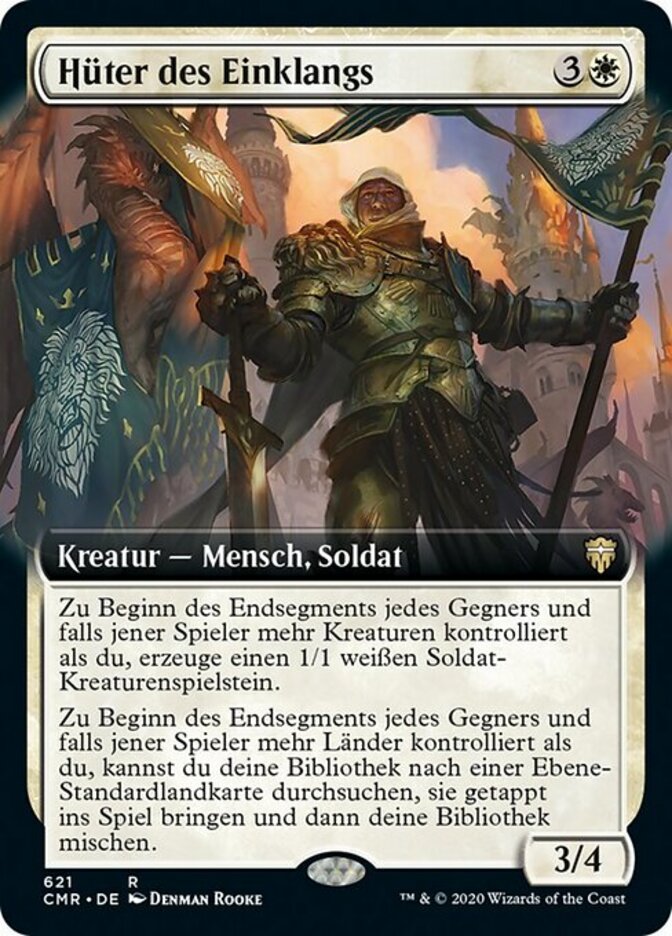 | Rules | At the beginning of each opponent's end step, if that player controls more creatures than you, create a 1/1 white Soldier creature token. At the beginning of each opponent's end step, if that player controls more lands than you, you may search your library for a basic Plains card, put it onto the battlefield tapped, then shuffle. |
