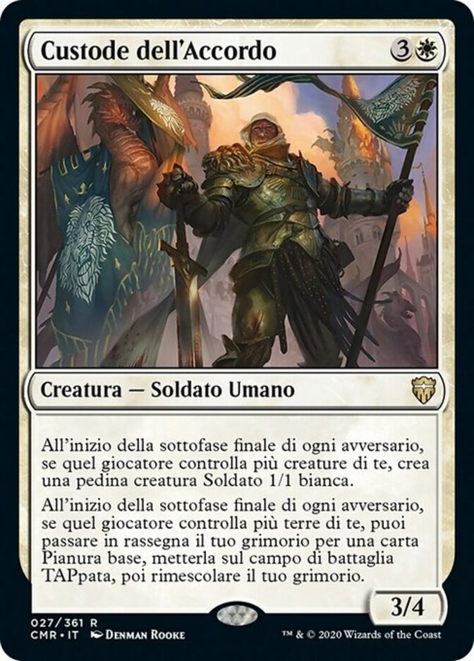 | Rules | At the beginning of each opponent's end step, if that player controls more creatures than you, create a 1/1 white Soldier creature token. At the beginning of each opponent's end step, if that player controls more lands than you, you may search your library for a basic Plains card, put it onto the battlefield tapped, then shuffle. |