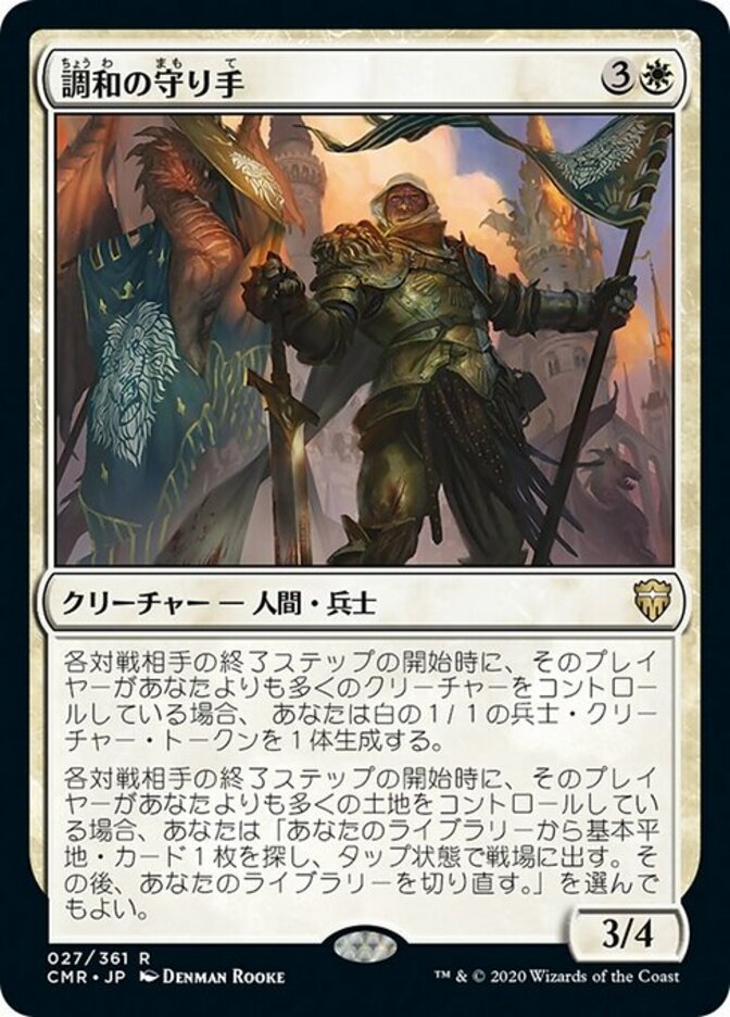 | Rules | At the beginning of each opponent's end step, if that player controls more creatures than you, create a 1/1 white Soldier creature token. At the beginning of each opponent's end step, if that player controls more lands than you, you may search your library for a basic Plains card, put it onto the battlefield tapped, then shuffle. |