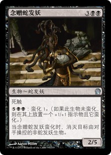 | Rules | Deathtouch : Monstrosity 1. (If this creature isn't monstrous, put a +1/+1 counter on it and it becomes monstrous.) When Keepsake Gorgon becomes monstrous, destroy target non-Gorgon creature an opponent controls. |