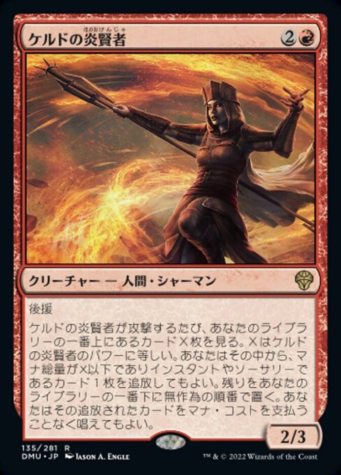 | Rules | Enlist Whenever Keldon Flamesage attacks, look at the top X cards of your library, where X is Keldon Flamesage's power. You may exile an instant or sorcery card with mana value X or less from among them. Put the rest on the bottom of your library in a random order. You may cast the exiled card without paying its mana cost. |